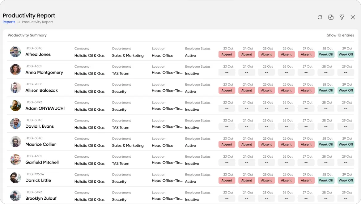 Gain real-time visibility into attendance, schedules, and locations for increased transparency.