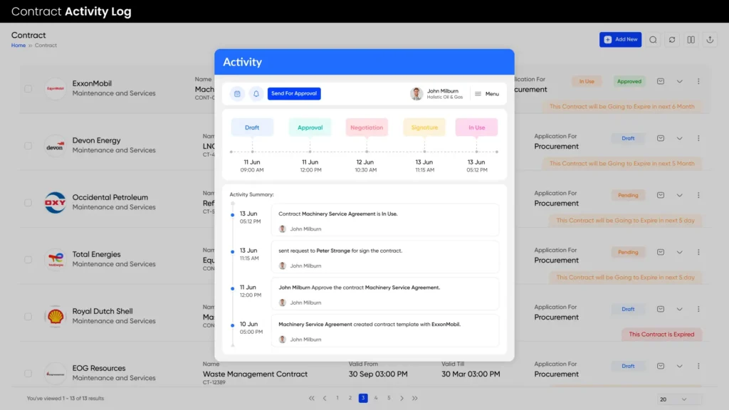 Simplify the approval process with automated workflows. Track contract status, enable faster decision-making, and ensure timely approvals with complete transparency.