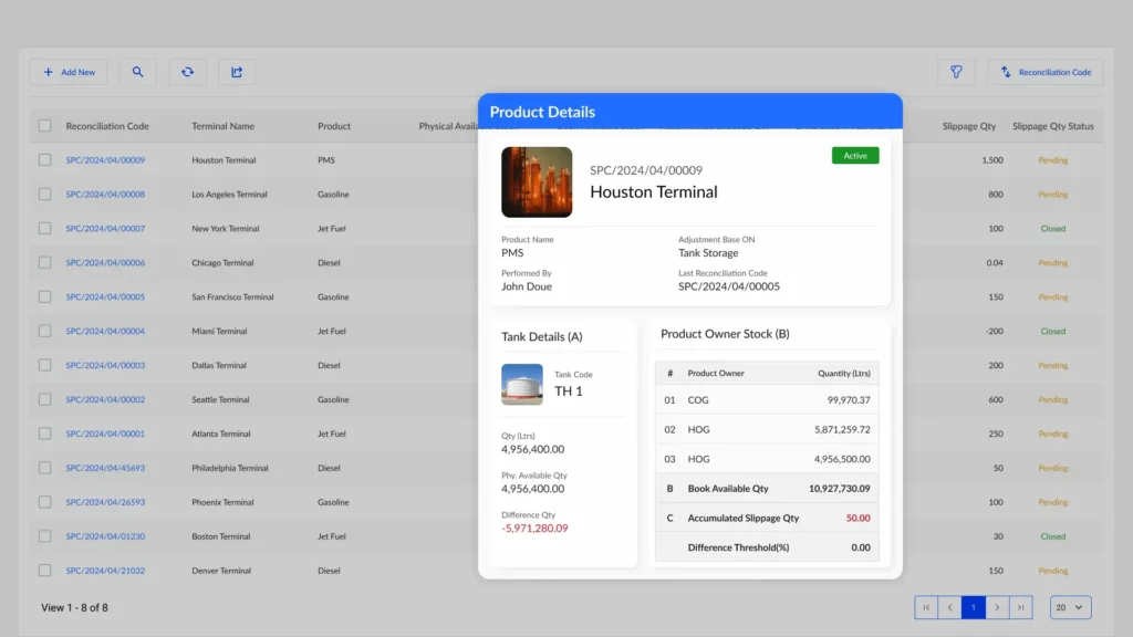 Manage accurate stock levels on each Tank in your Terminal.