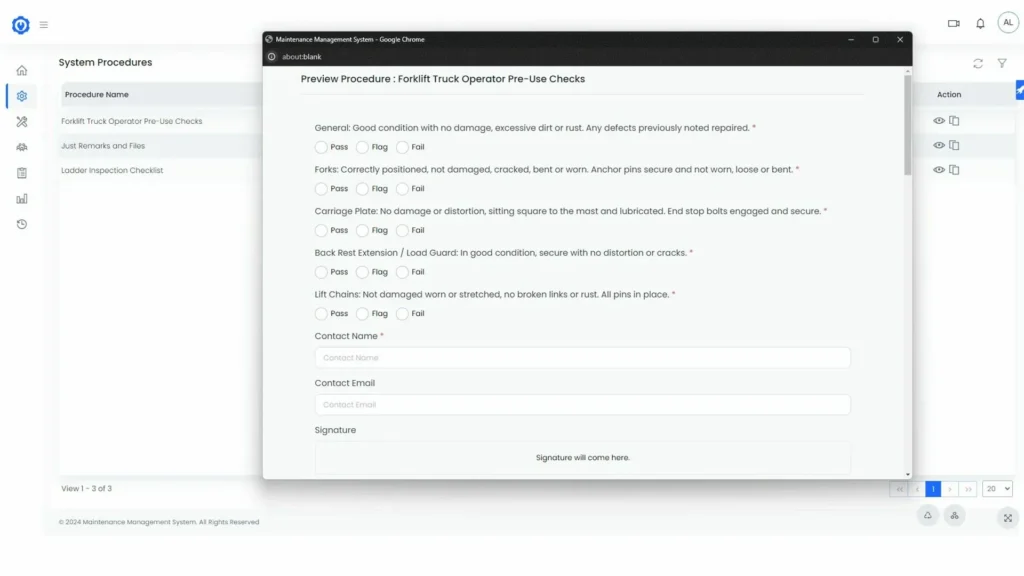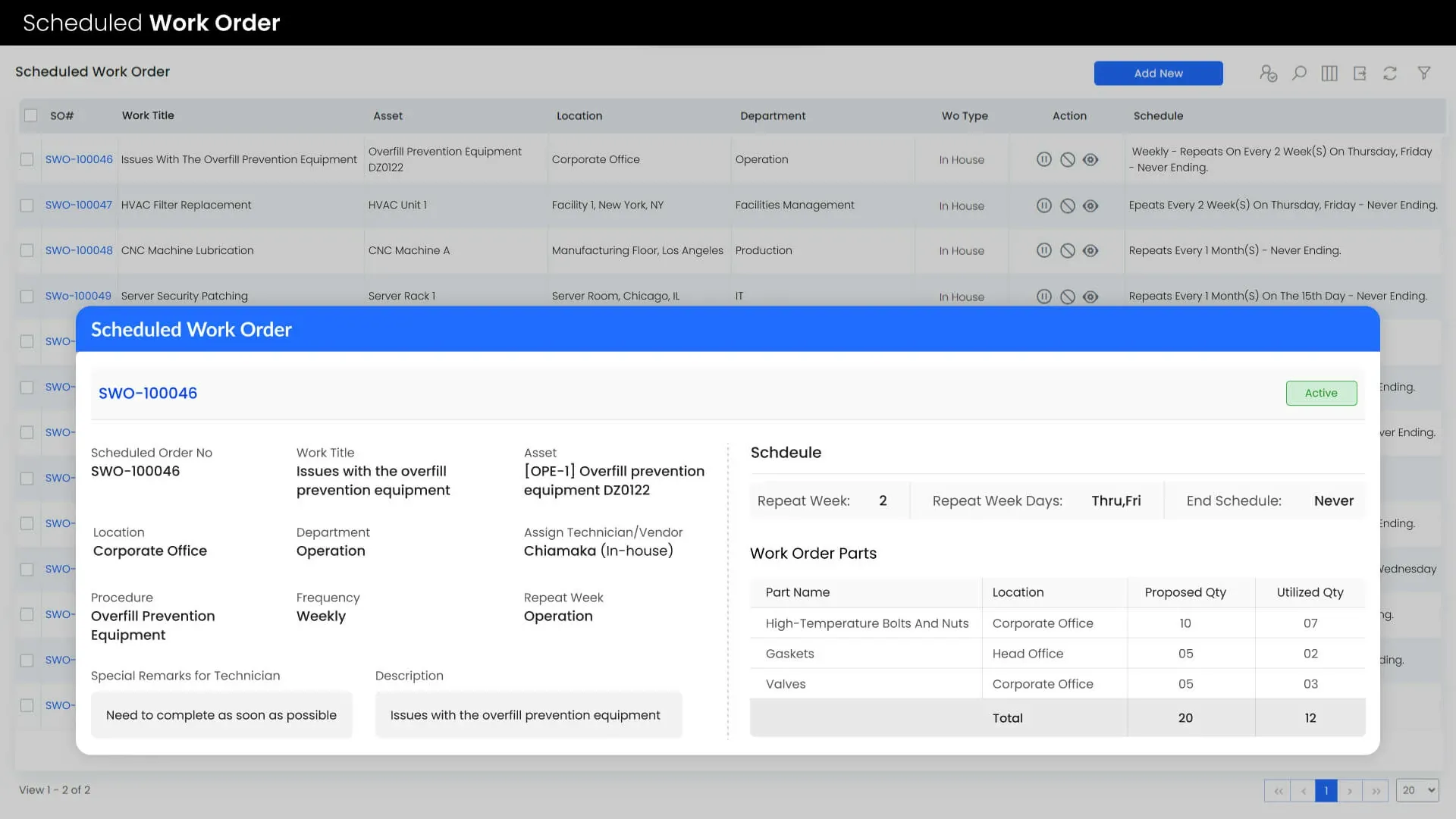 Create and Customize the work order procedures to guide technicians to execute work order accurately.